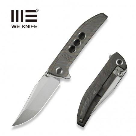 Ezinta Tiger Stripe Titanium, Polished Bead Blasted to wyjątkowy nóż składany EDC, doskonałe połączenie elegancji i funkcjonalności, wyprodukowany przez renomowaną manufakturę WeKnife. Głownia typu clip point, wykonana z najwyższej jakości stali Böhler M390, charakteryzuje się doskonałą odpornością na korozję oraz wyjątkową trwałością, niezastąpione narzędzie w codziennym użytkowaniu.