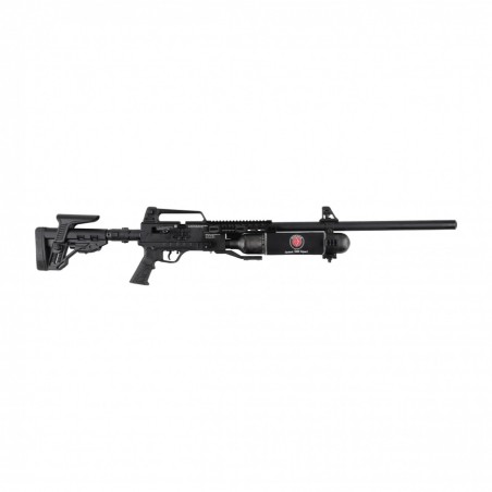 Dzięki dużej pojemności kartusz ładowany jest wyłącznie z butli technicznej lub nurkowej (300 bar) – to rozwiązanie stworzone z myślą o maksymalnej wydajności i pełnym wykorzystaniu potencjału broni.