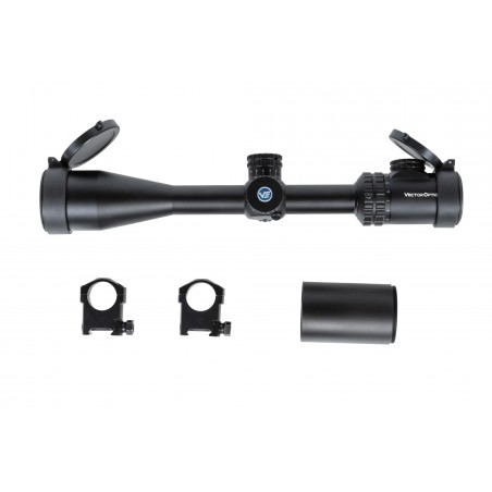 Luneta Hugo od firmy Vector Optics o powiększeniu x4-16 została wykonana z wytrzymałego aluminium 6061 T6. Jest wodoodporna na poziomie IPX4 oraz odporna na wstrząsy (750G). Zasilana jest baterią CR2032. Model wyposażony jest w tubus o średnicy 1 cala, (2.54 mm) oraz siatkę celowniczą VOI-10BDC