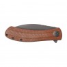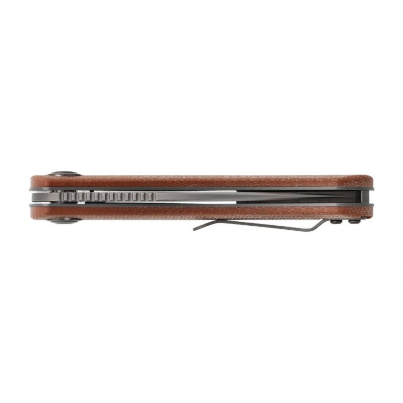 Głownia noża, wykonana z wytrzymałej i odpornej na stępienie stali D2, posiada profil drop point, zapewniający doskonałe właściwości tnące. System double detent umożliwia bezpieczne składanie noża, a flipper pełni rolę jelca. Ergonomiczny chwyt oraz okładziny z laminatu Micarta zapewniają komfort użytkowania w każdej sytuacji.