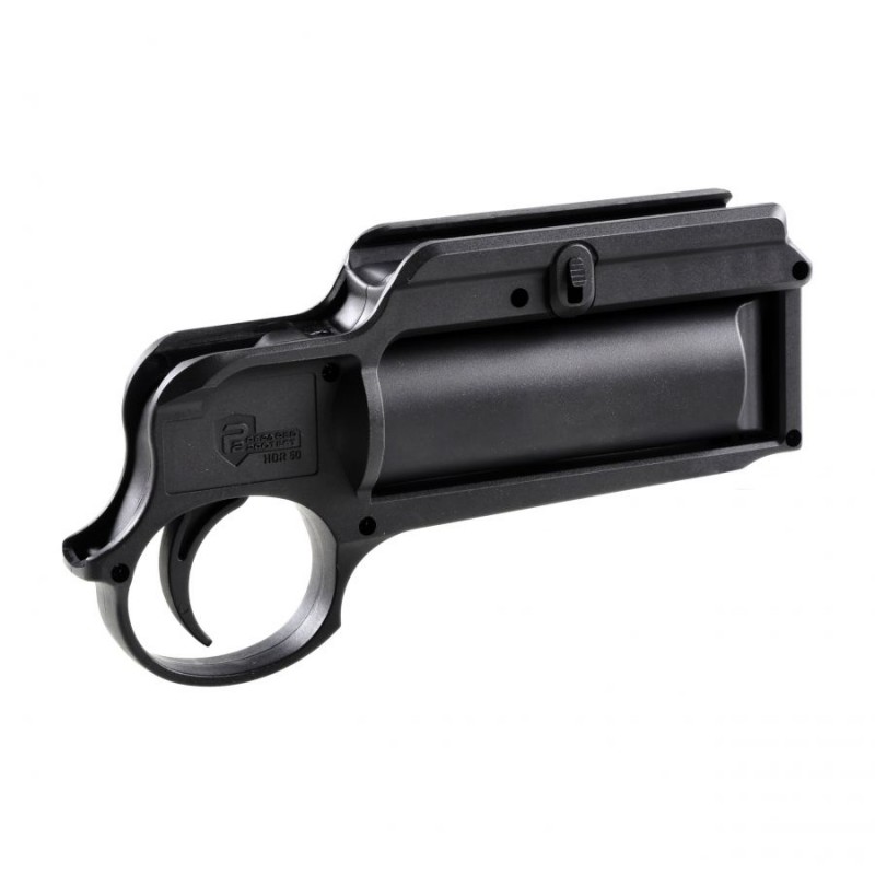 Wyrzutnia P2P HDR 50 Launcher to dodatkowy miotacz gazu pieprzowego, który montuje się na szynie rewolweru HDR 50, skutecznie zwiększając możliwości samoobrony.