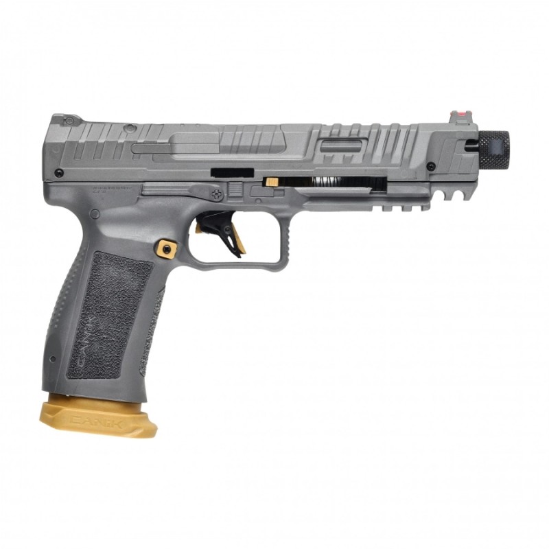 Pistolet na kule gumowe Canik SFx Rival .50 CO₂ łączy nowoczesne rozwiązania z konstrukcją wzorowaną na sportowym modelu Canik SFx Rival. Dzięki temu zapewnia bardzo naturalne odczucia w czasie ćwiczeń i pozwala wypracować pewne nawyki obsługi. To propozycja dla osób, które oczekują sprawnego działania, dobrej kontroli i możliwie realistycznego treningu.