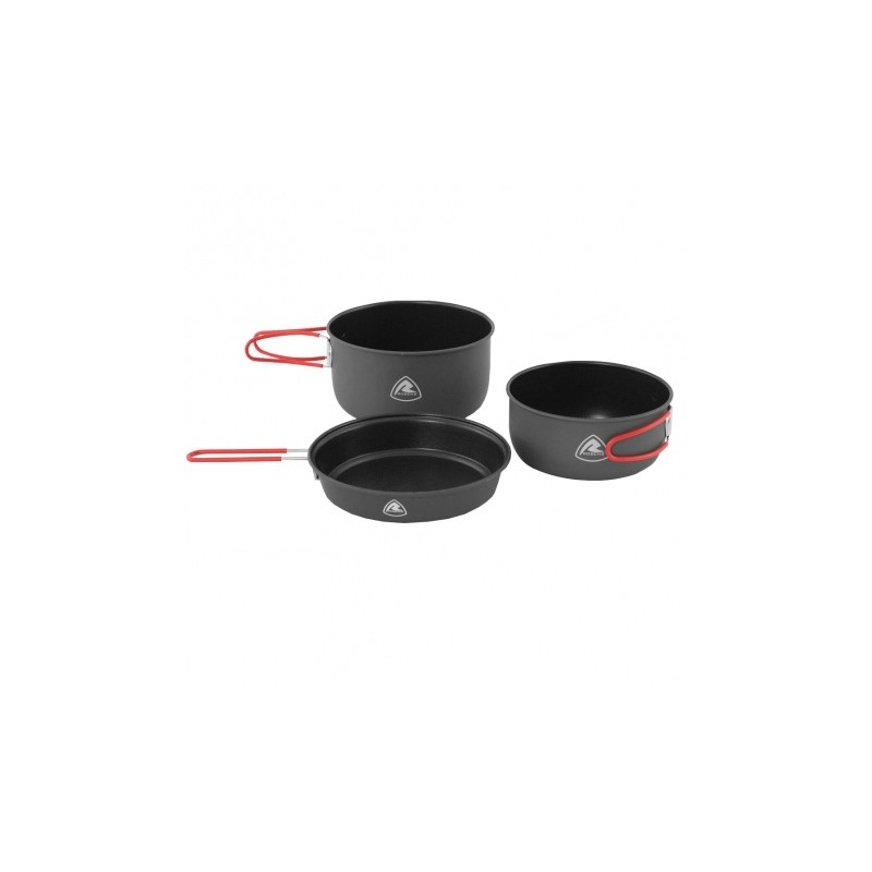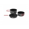 W skład zestawu wchodzą następujące elementy: patelnia o średnicy 21 cm, garnek o pojemności 1,6 litra oraz garnek o pojemności 2,6 litra. Całość zapakowano w praktyczny pokrowiec, który znacząco ułatwia przenoszenie naczyń. Zestaw waży jedynie 594 g.