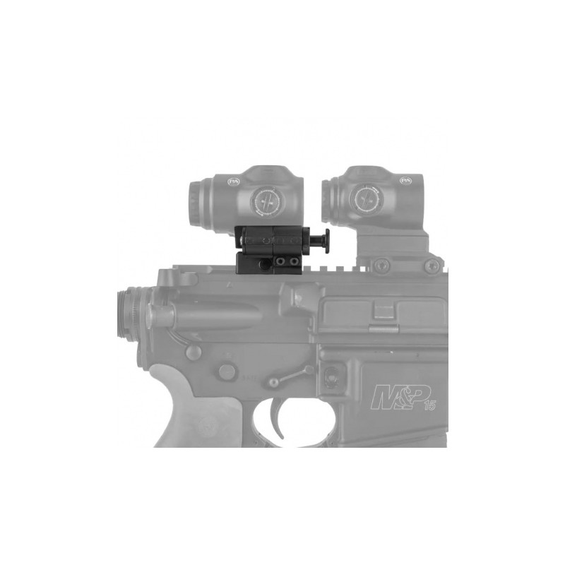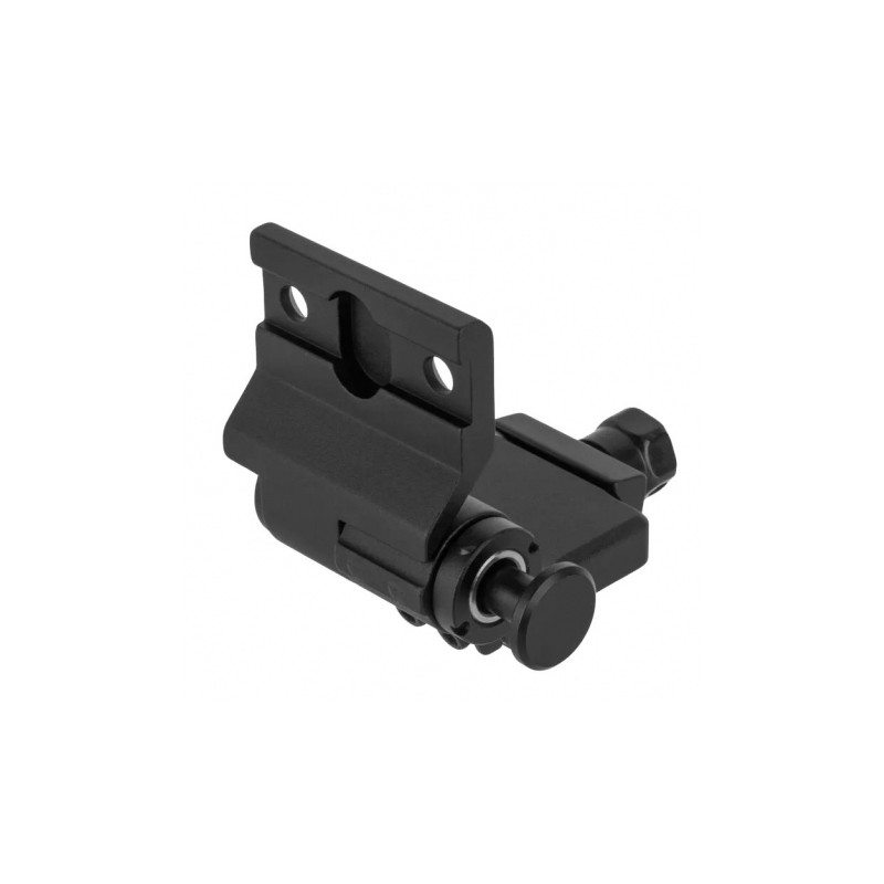 Primary Arms SLx FS Flip-to-Side Magnifier Mount – 2 Bolt Bottom Interface to baza uchylna do bezpośredniego montażu powiększalników mocowanych za pomocą dwóch śrub, celowników kolimatorowych i celowników mikropryzmatycznych. W odróżnieniu od klasycznego systemu nie wykorzystuje obejmy, pozwala więc na montaż optyki bezpośrednio do uchwytu.