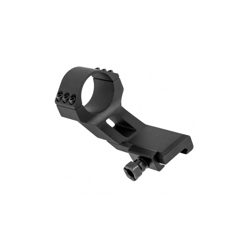 Primary Arms High Cantilever 30 mm Mount to lekki, kątowy montaż pozwalający na zamocowanie lunety o 30 mm tubusie w pozycji lower 1/3 cowitness względem mechanicznych przyrządów celowniczych. Montaż zapewnia większą odległość od oka, a więc szerokie pole widzenia i większą świadomość sytuacyjną. Kolejną zaletą montażu Cantilever jest możliwość jednoczesnego korzystania z lunety biegowej oraz kolimatora (z montażem kątowym offset) lub mechanicznych przyrządów celowniczych.