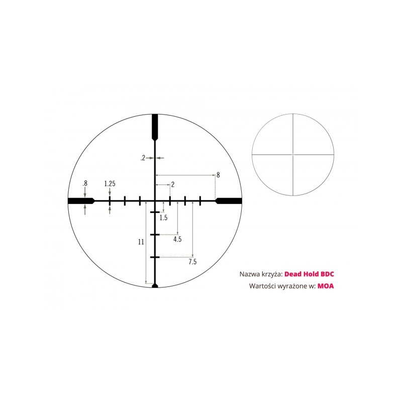 Zastosowana w celowniku siatka Dead-Hold BDC (wariant) ułatwia korektę strzału oraz eliminuje konieczność wprowadzania kolejnych poprawek. Przeznaczona jest ona do myślistwa, na różnych dystansach, gdzie kluczową rolę odgrywa konieczność długiego celowania.