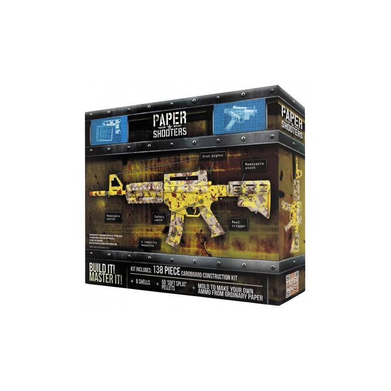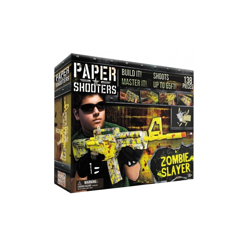 Karabin Paper Shooters Zombie Slayer to unikalna zabawka do samodzielnego złożenia, która umożliwia strzelanie papierowymi kulami na dystansie do 15 metrów. To bezpieczny w użytku model dla najmłodszych miłośników militariów oraz dla wszystkich dzieci, które lubią aktywnie spędzać czas na w domu czy na świeżym powietrzu.