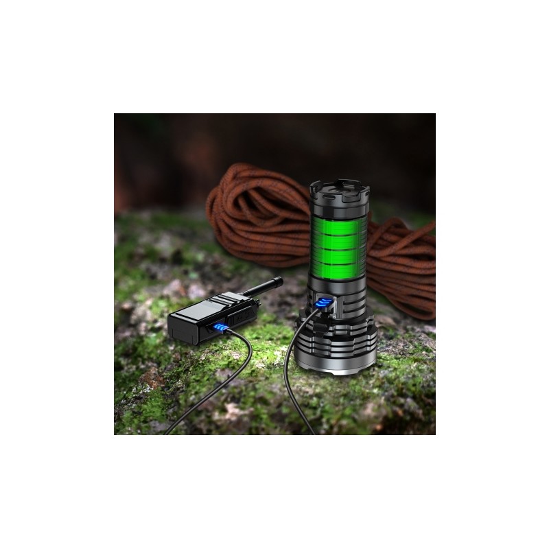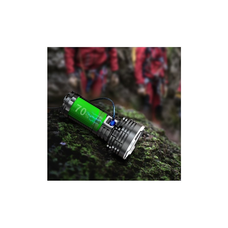 Fenix LR40R V2.0 zasilany jest potężnym pakietem akumulatorowym o pojemności 15 000 mAh (3×5000 mAh), na którym latarka może pracować ponad tydzień w trybie ecco (10 lumenów) lub 150 minut w trybie turbo - 15 000 lumenów (sumaryczny czas pracy). Dzięki zastosowaniu portu USB-C oraz wsparciu dla protokołów szybkiego ładowania QC2.0 akumulator pojemności 15 000 mAh możemy naładować w zaledwie 4 godziny.