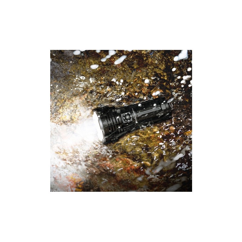 W trosce o bezpieczeństwo oraz prawidłowe funkcjonowanie Fenix LR40R V2.0 ma zabezpieczenie przed przegrzaniem, ochronę przed odwróconą polaryzacją oraz ostrzeżenie o niskim poziomi akumulatora. Latarka posiada wysoki stopień ochrony IP68, co oznacza, że jest całkowicie odporna na kurz i pył, drobne ciała stałe, pełne zanurzenie w wodzie (przez 30 minut na głębokość 2 m) oraz upadek z 1 metra.