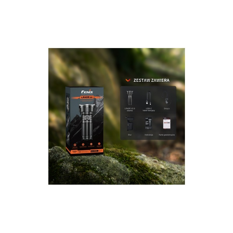 Fenix LR40R V2.0 to nowa wersja przenośnego szepracza, który po modernizacji oferuje strumień światła 15 000 lumenów, zasięg zwiększony do ponad 900 metrów oraz o 25% wydłużony czas pracy.