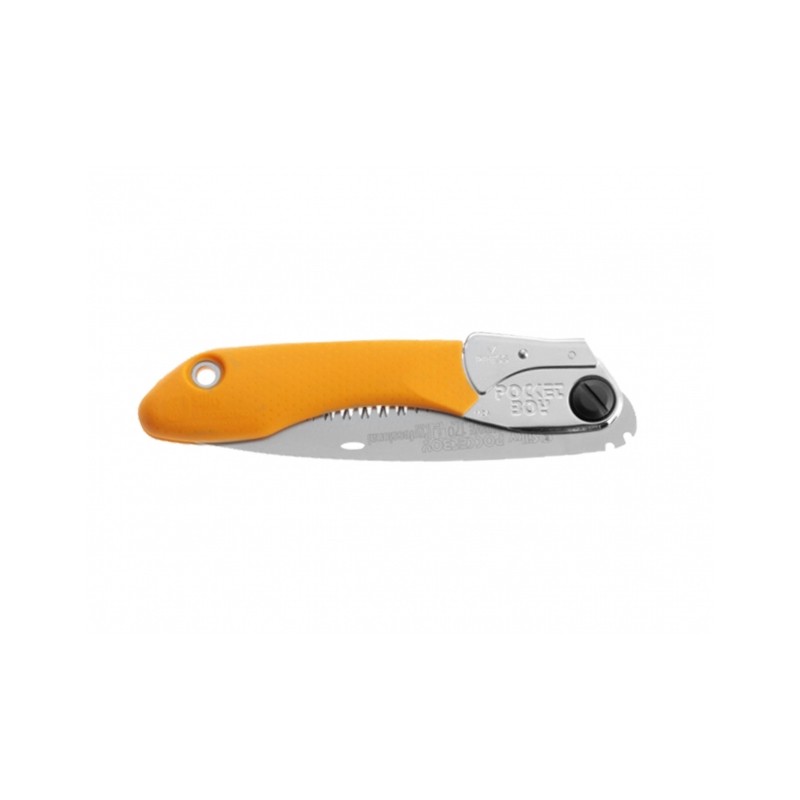 Piła jest składana w taki sposób, by agresywne zęby były bezpiecznie schowane wewnątrz rękojeści. Mechanizm blokujący pozwala na zablokowanie brzeszczotu w dwóch różnych pozycjach, w zależności od sytuacji i warunków pracy. W modelu Pocketboy zastosowano polipropylenową rękojeść, która gwarantuje wysoką przyczepność bez względu na warunki atmosferyczne. W zestawie otrzymujemy praktyczne zamykane etui, z przeźroczystego tworzywa, które zabezpiecza narzędzie podczas transportu w plecaku lub skrzynce narzędziowej.