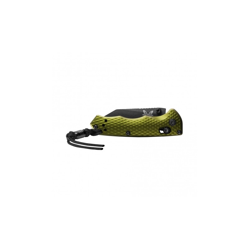 Ostrze można wygodnie rozłożyć jedną ręką, dzięki zastosowaniu dwustronnego kołka (z anodowanego aluminium), umożliwiając tym samym komfortową obsługę noża osobom prawo i leworęcznym. Blokada głowni to oczywiście AXIS-lock, flagowy mechanizm marki Benchmade, ceniony za ogromną odporność na obciążenia, niewrażliwość na zabrudzenie oraz łatwość użytkowania.