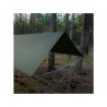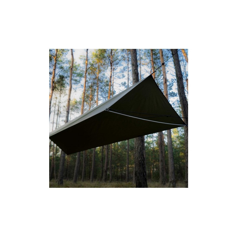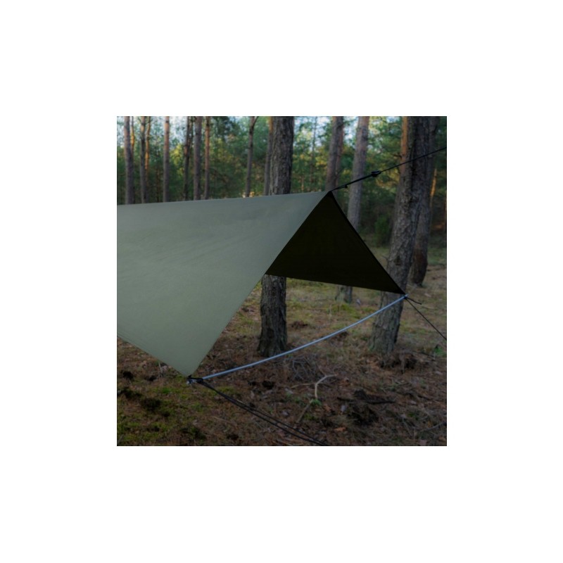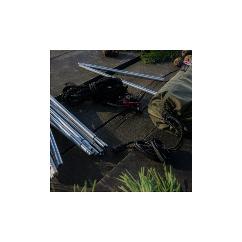 Tarp TigerWood Żak to charakterystyczna konstrukcja odmienna od większości spotykanych na rynku płacht biwakowych. Przede wszystkim z powodu zastosowania tutaj minimalistycznego stelaża, którego brak, a co za tym idzie mniejsza masa, zazwyczaj wymieniane są jako jedna z zalet tarpa. W tym jednak przypadku składany, segmentowy stelaż gwarantuje odpowiednią stabilizację płachty oraz co najważniejsze, możliwość rozpięcia jej bez konieczności wbijania śledzi w podłoże. Pozwoli nam to na wygodne rozbicie tarpa niezależnie od twardości gruntu.