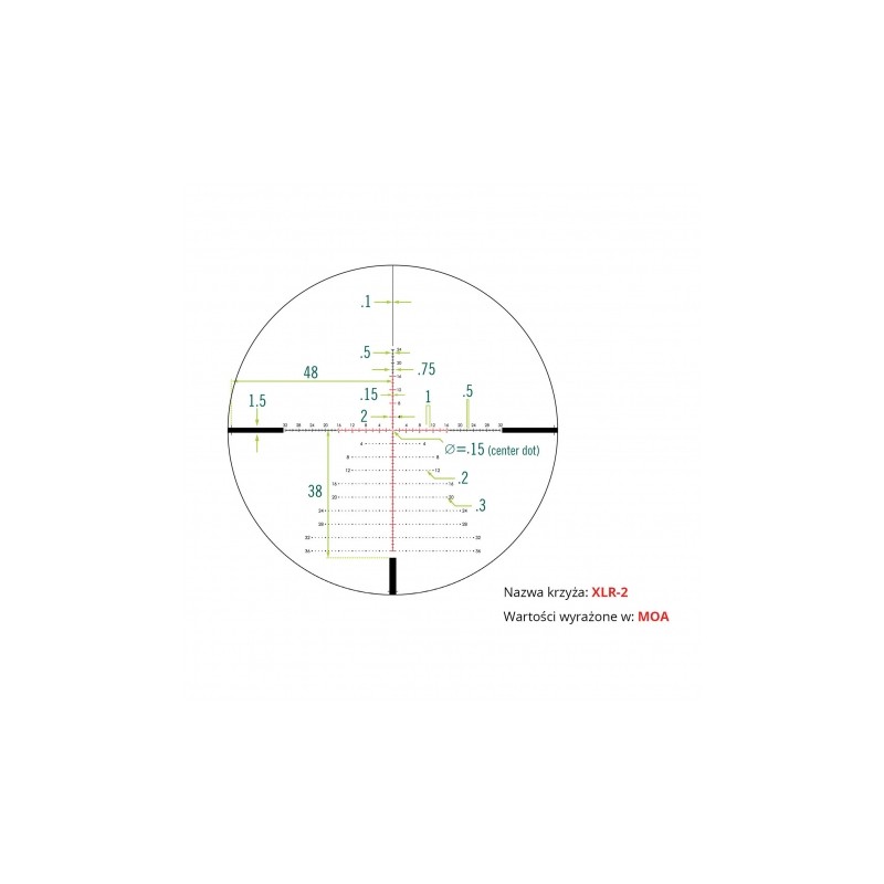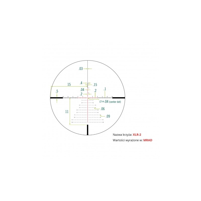 W lunecie Vortex Razor HD LHT 4,5-22x50 FFP 30 mm zastosowano siatkę celowniczą XLR-2 w pierwszym planie, z podświetlanym krzyżem, który stanowi nieocenioną pomoc podczas polowania po zmierzchu lub o świcie. XLR-2 dostarcza szczegółowych danych balistycznych, zachowując przy tym czysty i niezakłócony obraz podczas strzelania na długim dystansie. Siatka FPP (w pierwszym planie), zmienia swój rozmiar w zależności od powiększenia, umożliwiając komfortowy odczyt i precyzyjne nanoszenie poprawek. Pole widzenia na 100 m wynosi od 7,83 m (powiększenie 4,5×) do 1,56 m (powiększenie 22×).  Siatka umożliwia precyzyjne określenie odległości, kompensację opadu, nanoszenie korekty na wiatr oraz obliczanie parametrów ruchomego celu. W zależności od preferencji, w momencie zakupu możemy wybierać pomiędzy siatką wyrażoną w MOA lub MRAD.