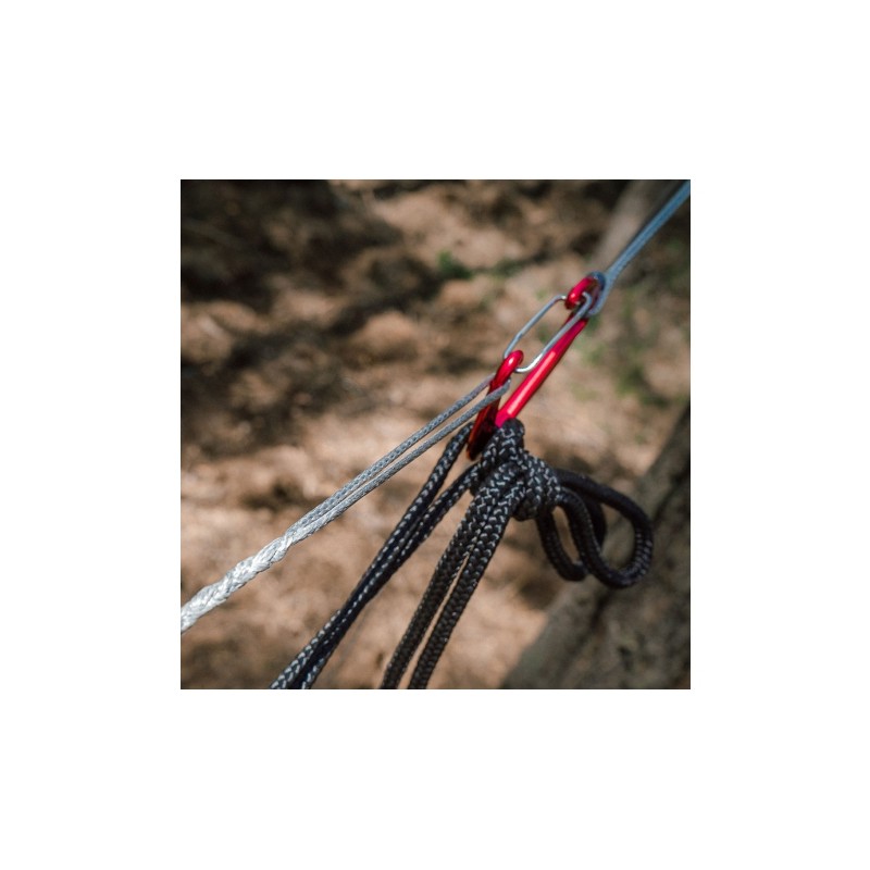 Stworzona przez polską firmę TigerWood cięciwa do hamaka gwarantująca zwiększony komfort oraz jednakowe napięcie hamaka przy każdym rozwieszeniu. Wykorzystanie cięciwy pozwala nam na wygodne ułożenie się w pozycji brazylijskiej, dzięki czemu nasz kręgosłup pozostaje w naturalnej pozycji podczas snu. Konstrukcja w formie whoopie sling gwarantuje niezwykle łatwy montaż oraz stabilne utrzymanie założonej długości. Zastosowanie materiałów o wysokiej odporności gwarantuje natomiast wytrzymałość na rozciąganie rzędu 550 kg gwarantującą niezawodność w każdej sytuacji.
