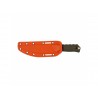 Do bezpiecznego przenoszenia noża służy pochewka z Boltaronu, termoplastycznego tworzywa o wysokiej odporności na uszkodzenia, temperaturę i wilgoć. Pochewka jest kompatybilna z montażem TekLok. Pochewka formowana termicznie utrzymuje nóż w stabilnej pozycji i chroni przed jego zgubieniem. Jaskrawopomarańczowa kolorystyka ułatwia odszukanie noża pozostawionego pośród traw lub runa oraz zwiększa naszą widoczność podczas polowania zbiorowego.