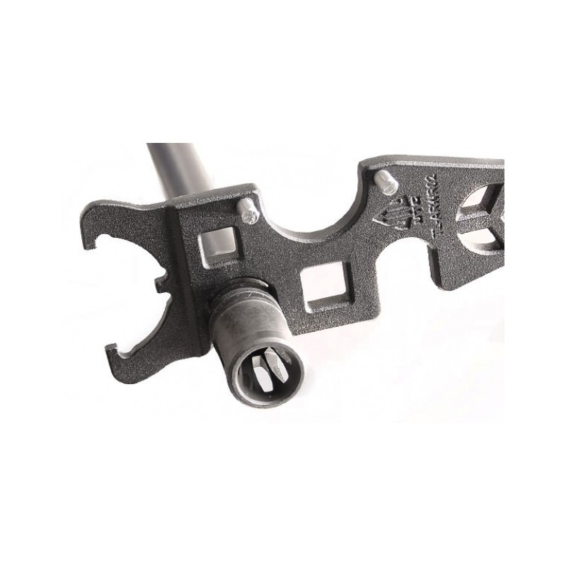Za pomocą tego niewielkiego narzędzia użytkownik AR15 może przeprowadzić większość prac związanych z demontażem i wymianą głównych podzespołów broni np. odkręceniem kolby, wymianą lufy i urządzenia wylotowego oraz wiele innych.