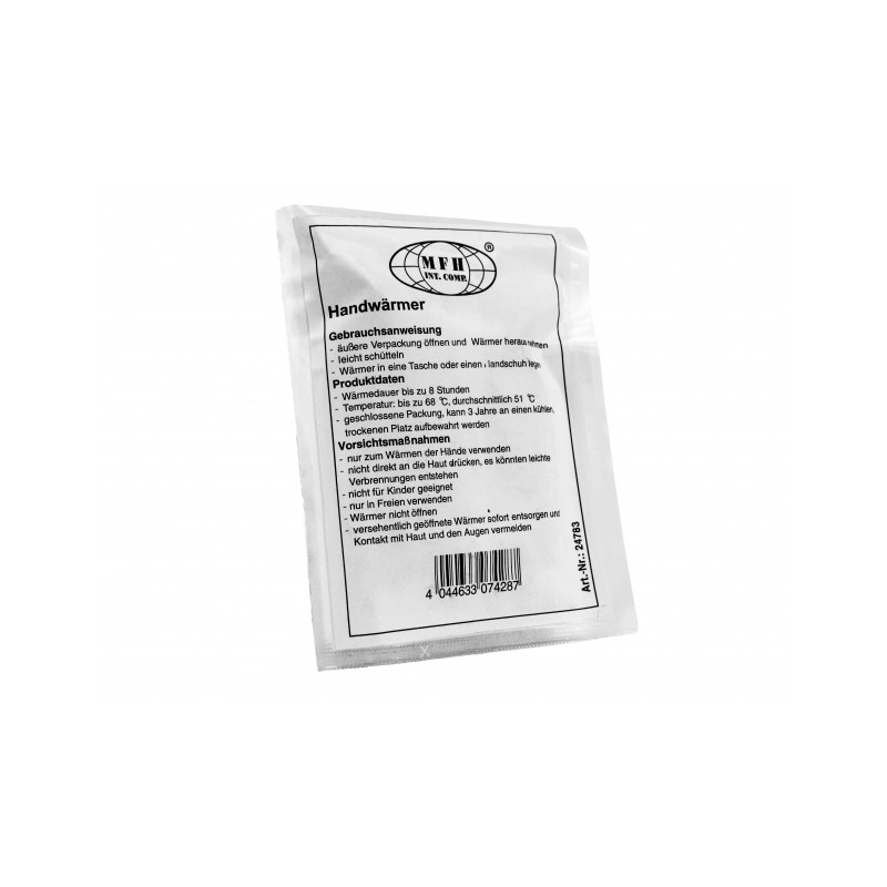 Fabrycznie nowy, bardzo wydajny ogrzewacz do rąk i ciała. Od chwili rozruchu utrzymuje temperaturę od 50 do 69 stopni przez ok. 8 godzin. Świetna alternatywa na wycieczki w ekstremalnych warunkach. Proces grzania można zatrzymać na 7 dni poprzez zamknięcie go w szczelnym pojemniku, ograniczając dostęp powietrza. Proszek zawarty w środku jest nietoksyczny, bezwonny i w pełni ekologiczny.