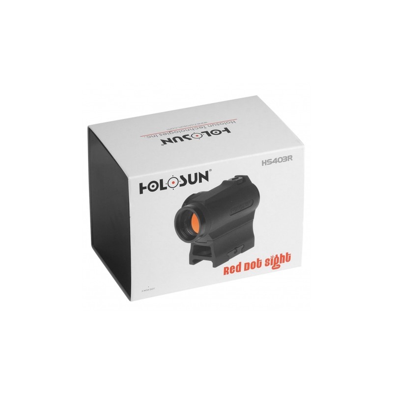 Holosun Red Dot HS403R to karabinowy celownik kolimatorowy o zamkniętej konstrukcji, wyposażony w aluminiową obudowę, system oszczędzania baterii Shake Awake oraz dwie podstawy montażowe,