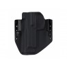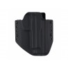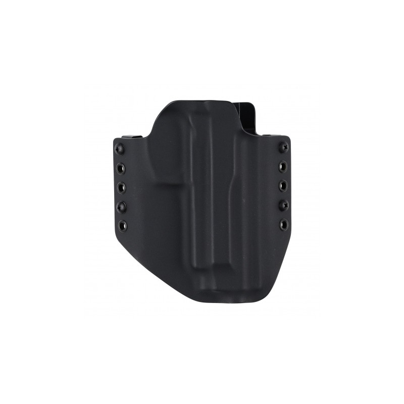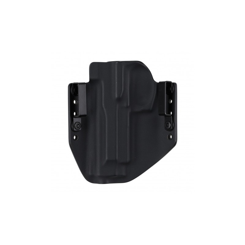 Omawiany model charakteryzuje się konstrukcją typu OWB (Over Waist Band) przeznaczoną do noszenia na zewnętrznej stronie pasa. Kabura tego typu gwarantuje wysoki komfort przenoszenia oraz możliwość szybkiego dobycia. W przypadku chęci wykorzystania w roli kabury EDC konstrukcja skutecznie dociska broń do naszego ciała, pozwalając na dyskretne przenoszenie jej pod obszerną koszulą, marynarką lub kurtką. Kabura OWB doskonale sprawdzi się również w taktycznych lub sportowych konfiguracjach pasa strzeleckiego - skorzystamy z niej zatem zarówno na strzelnicy, jak i w codziennym użytkowaniu. Zwielokrotnione porty montażu szlufek pozwolą nam na ustalenie pionowej pozycji kabury.