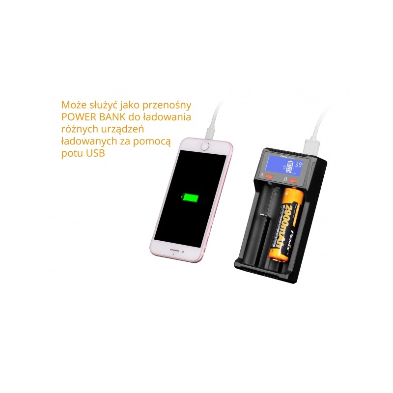 Fenix ARE-D2 to dwukanałowa ładowarka mikroprocesorowa USB z funkcją power banku, dzięki, której prawidłowo, szybko i bezpiecznie naładujemy różnego rodzaju akumulatory Li-ion, Ni-MH oraz Ni-Cd.