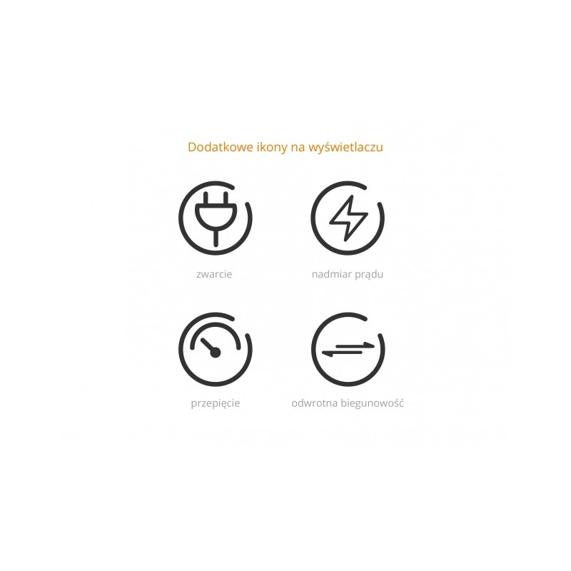 Na wyświetlaczu LCD pojawią się informacje o prądzie ładowania, rodzaju akumulatora, graficzna wizualizacja poziomu naładowania. Wysokość prądu ładowania można dostosować w zależności od potrzeb oraz pojemności akumulatora.