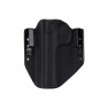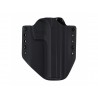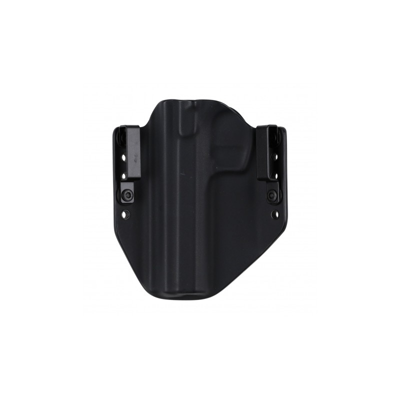 Omawiany model charakteryzuje się konstrukcją typu OWB (Over Waist Band) przeznaczoną do noszenia na zewnętrznej stronie pasa. Kabura tego typu gwarantuje wysoki komfort przenoszenia oraz możliwość szybkiego dobycia. W przypadku chęci wykorzystania w roli kabury EDC konstrukcja skutecznie dociska broń do naszego ciała, pozwalając na dyskretne przenoszenie jej pod obszerną koszulą, marynarką lub kurtką. Kabura OWB doskonale sprawdzi się również w taktycznych lub sportowych konfiguracjach pasa strzeleckiego - skorzystamy z niej zatem zarówno na strzelnicy, jak i w codziennym użytkowaniu. Zwielokrotnione porty montażu szlufek pozwolą nam na ustalenie pionowej pozycji kabury.