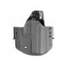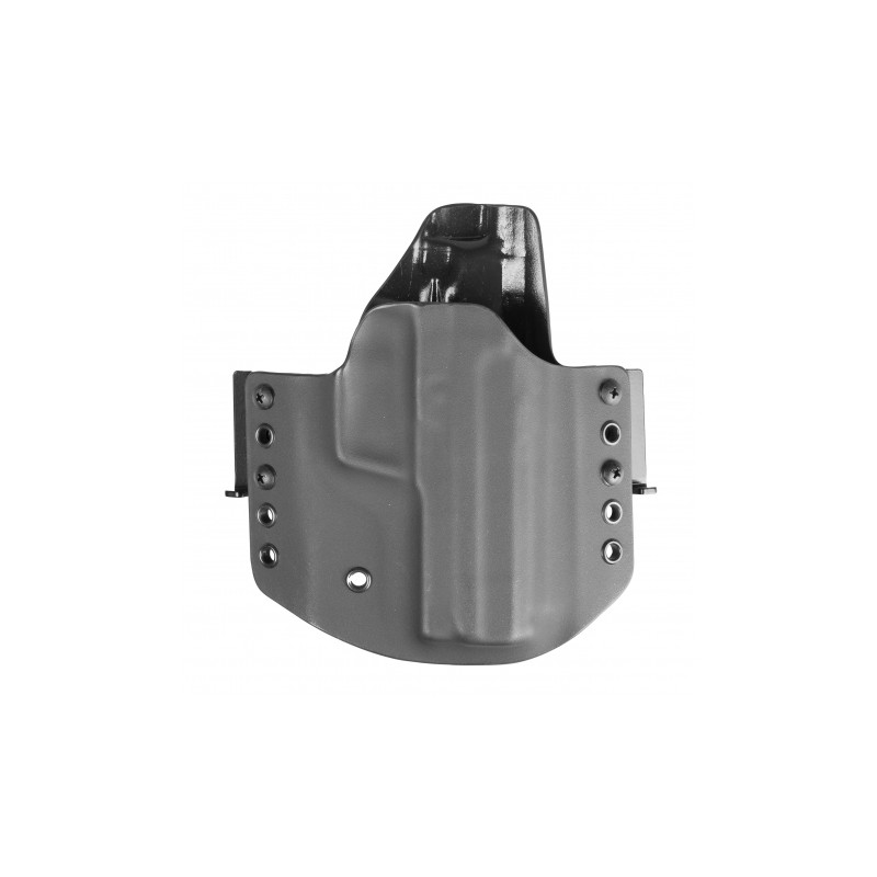 Omawiany model charakteryzuje się konstrukcją typu OWB (Over Waist Band) przeznaczoną do noszenia na zewnętrznej stronie pasa. Kabura tego typu gwarantuje wysoki komfort przenoszenia oraz możliwość szybkiego dobycia. W przypadku chęci wykorzystania w roli kabury EDC konstrukcja skutecznie dociska broń do naszego ciała, pozwalając na dyskretne przenoszenie jej pod obszerną koszulą, marynarką lub kurtką. Kabura OWB doskonale sprawdzi się również w taktycznych lub sportowych konfiguracjach pasa strzeleckiego - skorzystamy z niej zatem zarówno na strzelnicy, jak i w codziennym użytkowaniu. Zwielokrotnione porty montażu szlufek pozwolą nam na ustalenie pionowej pozycji kabury.