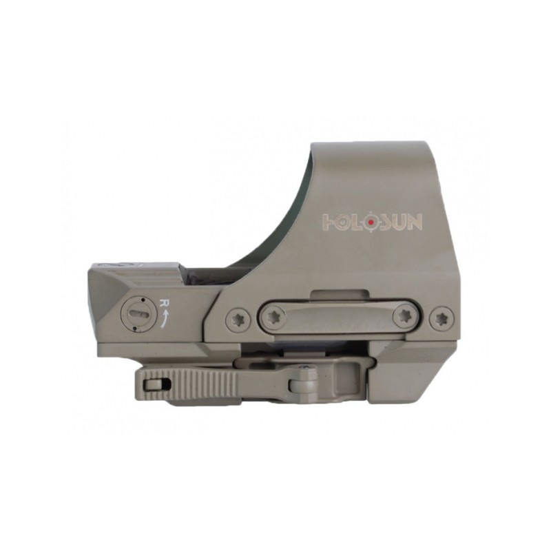 Holosun Open Reflex HS510C FDE to zaawansowany celownik kolimatorowy o otwartej konstrukcji, wyposażony w tytanową obudowę optyki, układ zasilania słonecznego Solar Failsafe, system oszczędzania baterii Shake Awake oraz możliwość zmiany znaku celowniczego. Kolorystyka Flat Dark Earth.