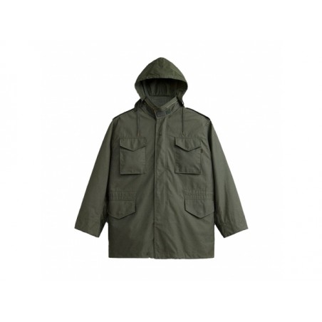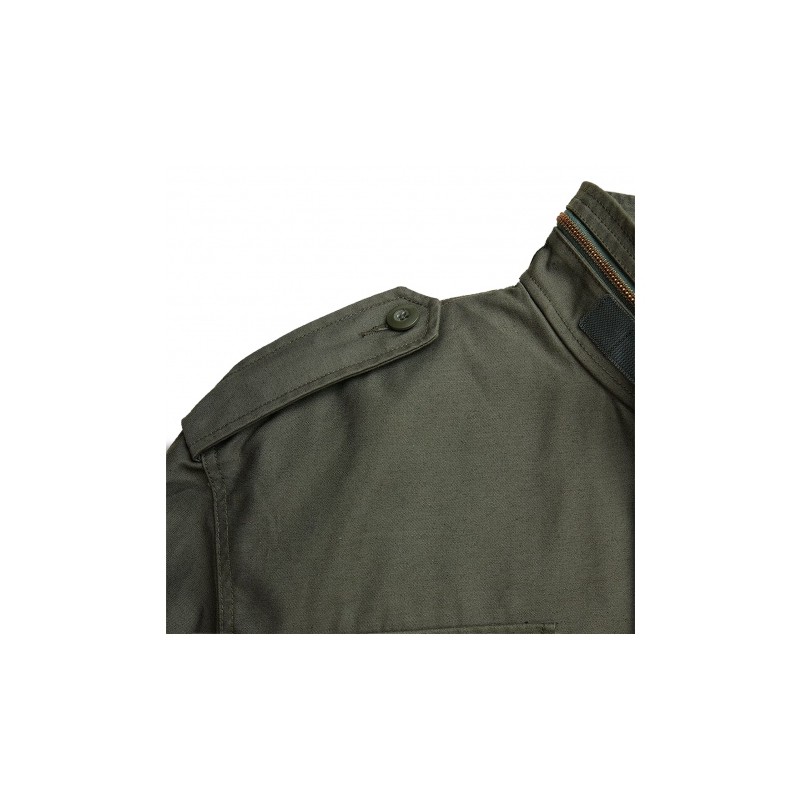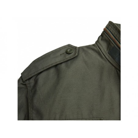 Kurtka posiada solidny metalowy zamek z logo Alpha Industries, który osłonięto klapą z napami. Wyposażono ją w cztery przestronne kieszenie: dwie na wysokości klatki piersiowej oraz dwie w dolnej części. Każda z kieszeni osłonięta jest zapinaną na napę trójkątną klapą. Kurtka posiada szeroki kołnierz z wyposażoną w suwak kieszonką, w której można znaleźć kaptur ze ściągaczem. Kaptur uszyto z cienkiego i zaimpregnowanego materiału.