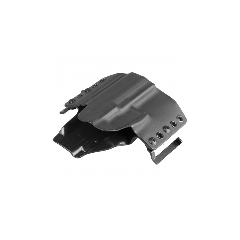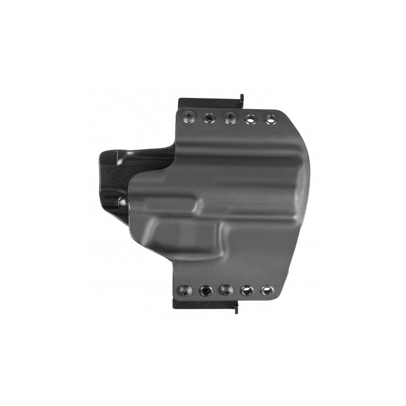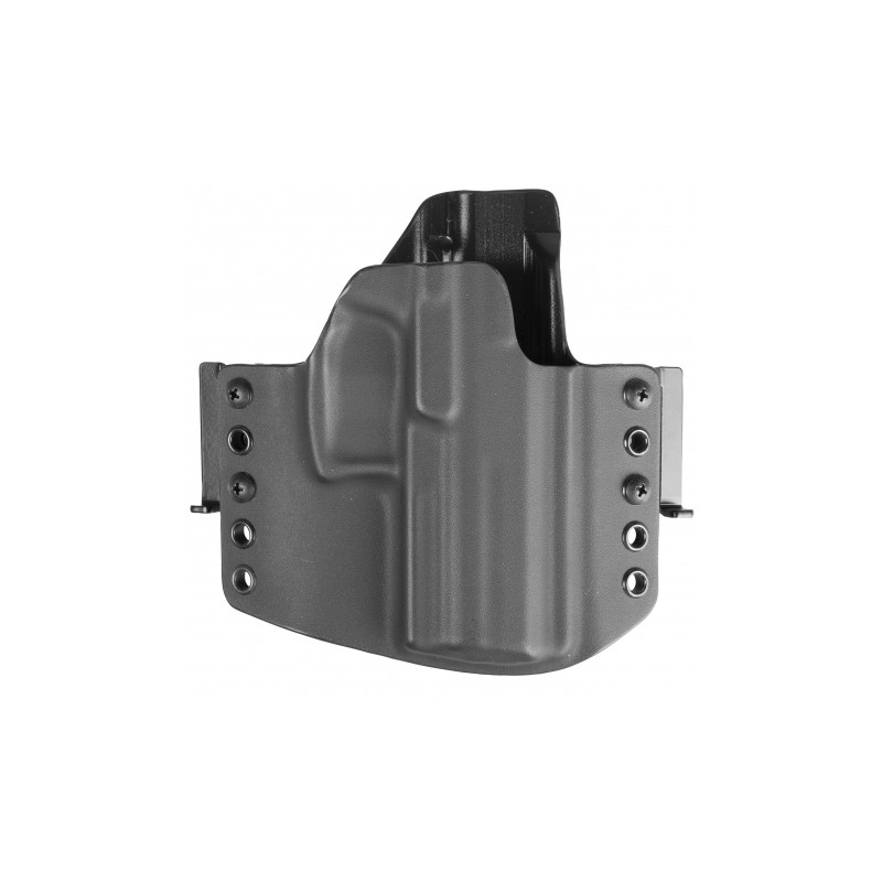 Omawiany model charakteryzuje się konstrukcją typu OWB (Over Waist Band) przeznaczoną do noszenia na zewnętrznej stronie pasa. Kabura tego typu gwarantuje wysoki komfort przenoszenia oraz możliwość szybkiego dobycia. W przypadku chęci wykorzystania w roli kabury EDC konstrukcja skutecznie dociska broń do naszego ciała, pozwalając na dyskretne przenoszenie jej pod obszerną koszulą, marynarką lub kurtką. Kabura OWB doskonale sprawdzi się również w taktycznych lub sportowych konfiguracjach pasa strzeleckiego - skorzystamy z niej zatem zarówno na strzelnicy, jak i w codziennym użytkowaniu. Zwielokrotnione porty montażu szlufek pozwolą nam na ustalenie pionowej pozycji kabury.