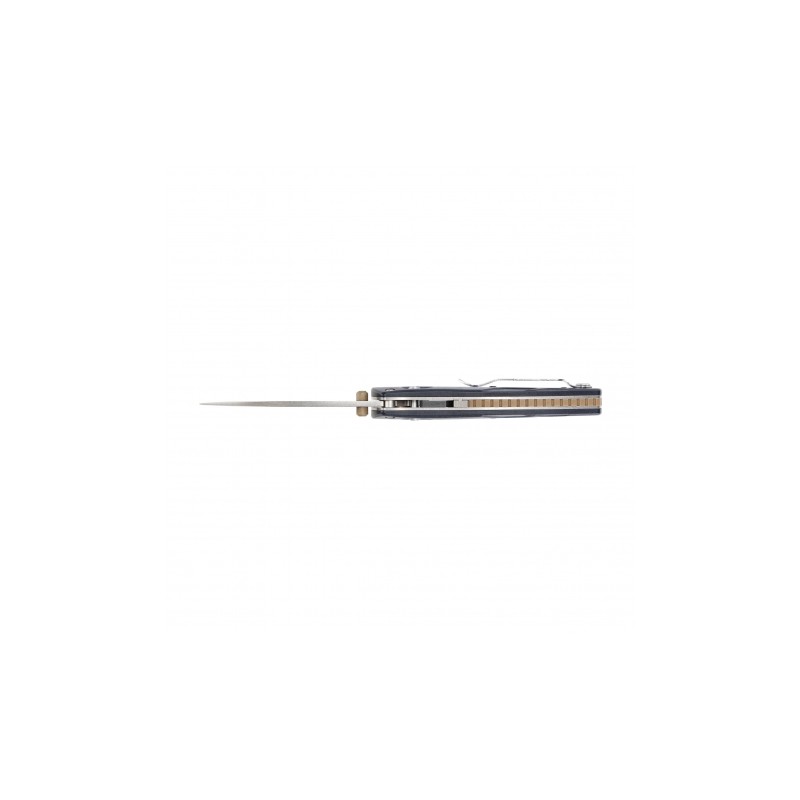 Profilowany kształt w połączeniu z wycięciami na palce i skośnym rowkowaniem zapewnia doskonałą przyczepność noża oraz komfort użytkowy. Konstrukcję noża wzmacniają pełne wkładki ze stali 420 (linersy).