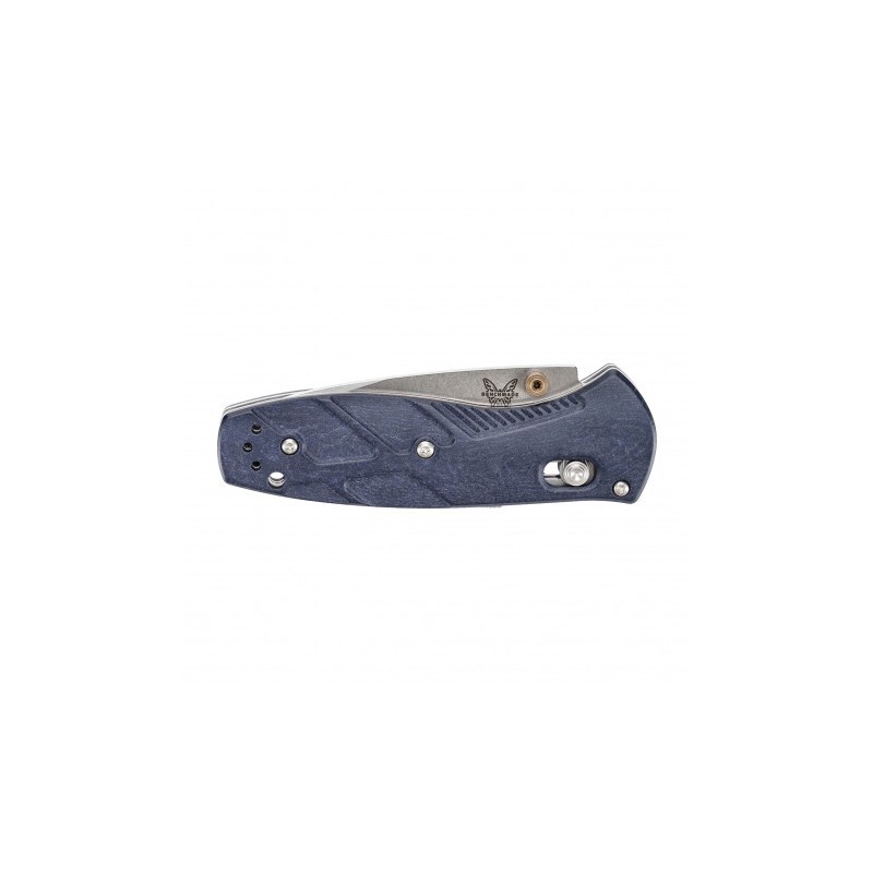 Benchmade 585-03 Mini Barrage to niewielki nóż składany codziennego użytku, wyposażony we wspomaganą głownię ze stali CPM-S30V, profilowaną rękojeść z niebieskiego laminatu Richlite oraz sprawdzoną blokadę axis-lock.