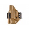Omawiany model charakteryzuje się konstrukcją typu OWB (Over Waist Band) przeznaczoną do noszenia na zewnętrznej stronie pasa. Kabura tego typu gwarantuje wysoki komfort przenoszenia oraz możliwość szybkiego dobycia. W przypadku chęci wykorzystania w roli kabury EDC konstrukcja skutecznie dociska broń do naszego ciała, pozwalając na dyskretne przenoszenie jej pod obszerną koszulą, marynarką lub kurtką. Kabura OWB doskonale sprawdzi się również w taktycznych lub sportowych konfiguracjach pasa strzeleckiego - skorzystamy z niej zatem zarówno na strzelnicy, jak i w codziennym użytkowaniu. Zwielokrotnione porty montażu szlufek pozwolą nam na ustalenie pionowej pozycji kabury.