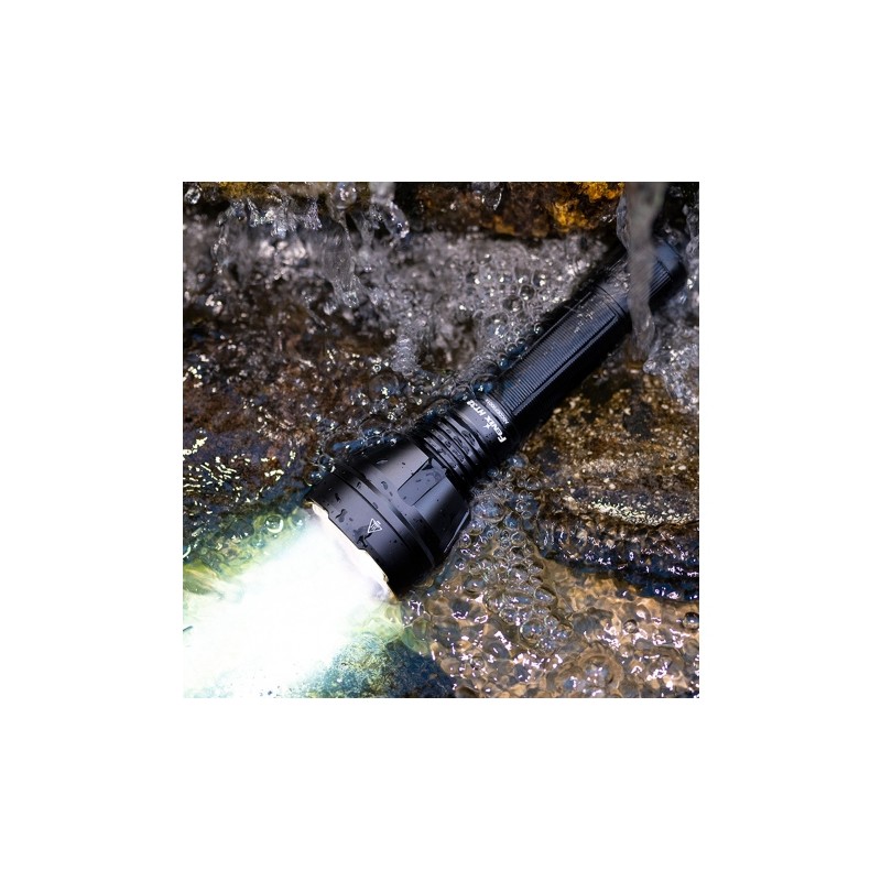 Latarka zapamiętuje ostatni używany poziom jasności. Po ponownym włączeniu latarka automatycznie aktywuje się w tym trybie (funkcja pamięci). Latarka ma wysoką klasę ochrony IP68, jest zatem odporna na pył, kurz, pełne zanurzenia wodzie na głębokości 2 m oraz upadek z wysokości 1 m. Producent nie zapomniał także o zastosowaniu zabezpieczenia przed przegrzaniem i odwróconą polaryzacją oraz sterownika z cyfrową regulacją prądu.