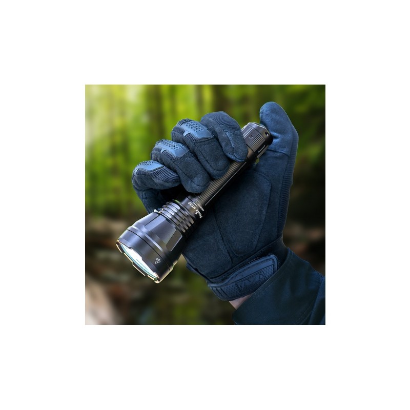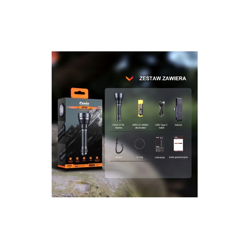 Fenix HT32 to potężny szperacz myśliwski emitujący strumień światła o dużym zasięgu w trzech kolorach. Konfiguracja diod pozwala nam na uzyskanie maksymalnej mocy z białej diody, dyskretnego światła obserwacyjnego z czerwonej oraz kojącego wzrok i ograniczającego płoszenie zwierzyny światła zielonego.