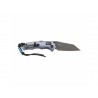 Dzięki zastosowaniu okładzin z trwałego, ciemnoniebieskiego aluminium obrabianego metodą CNC, konstrukcja noża jest niezwykle lekka (65 g) i znacznie bardziej wytrzymała. Wyprofilowana rękojeść zapewnia pewny i bezpieczny chwyt w trakcie pracy.
