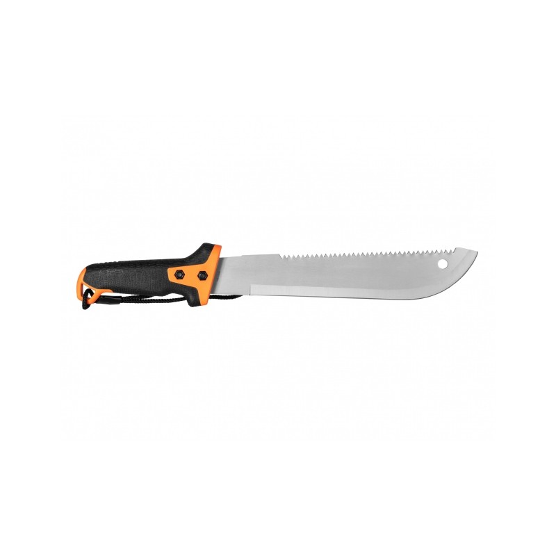 Na grzbiecie maczety znajduje się piła do drewna wyposażona w 2 rzędy ostrych zębów.