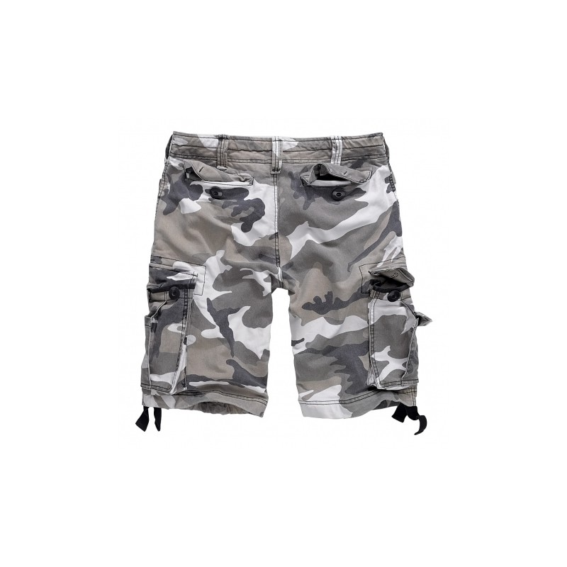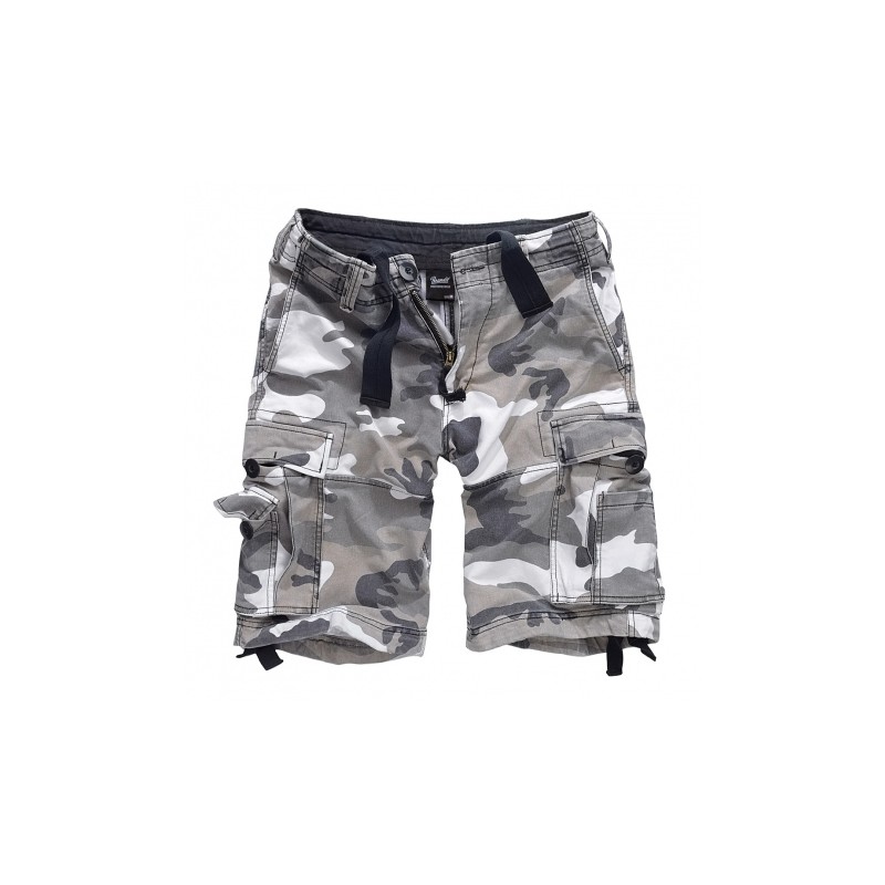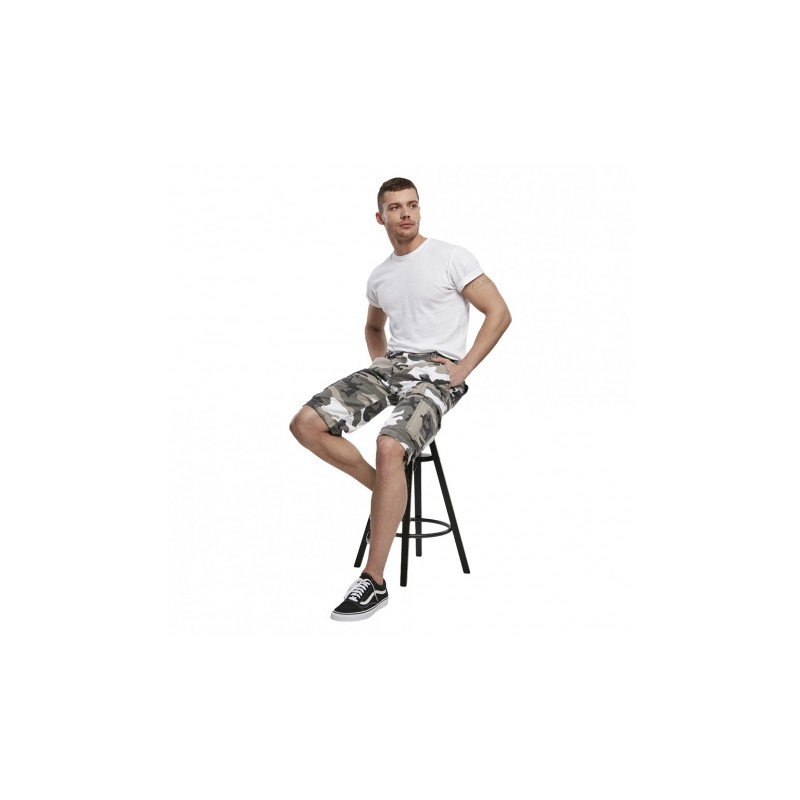 Szorty męskie Vintage Classic w kamuflarzu urban od firmy Brandit to krótkie spodenki wykonane w całości z bawełny, które poddano specjalnemu procesowi ścierania, który nadał tkaninie charakterystycznego wyglądu sprania.