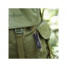 Do wykonania rękojeści zastosowano drewno francuskiego grabu, z powłoką lakierniczą chroniącą przed zabrudzeniem i działaniem wilgoci. Rękojeść ma tradycyjny owalny profil, który rozszerza się na końcu, dzięki czemu nóż wygodnie i pewnie leży w dłoni. Otwór w rękojeści wykorzystano do wplecenia rzemienia, który ułatwia wyjmowanie noża z kieszeni oraz pozwala na jego troczenie do ekwipunku.