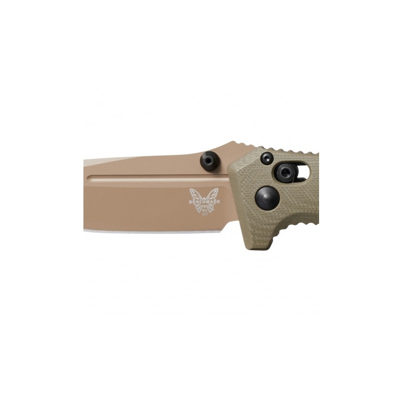 Za bezpieczeństwo pracy odpowiada flagowy mechanizm Benchmade, dwustronna blokada Axis-lock, ceniona za ogromną wytrzymałość mechaniczną, odporność na zabrudzenie oraz wygodę obsługi dla prawo i leworęcznych użytkowników.