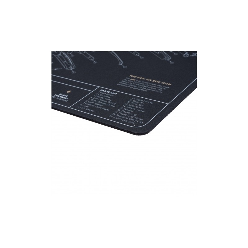 Na macie nadrukowano schemat noża składanego Benchmade 940 Osborne.