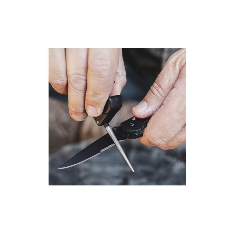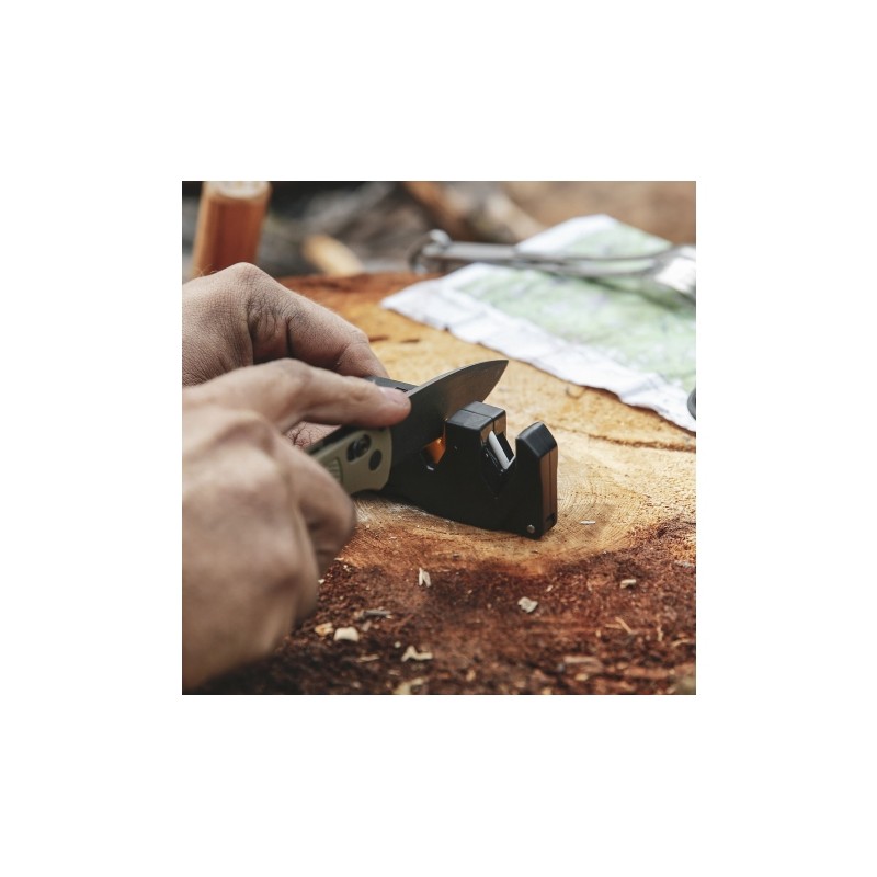Work Sharp Pivot Plus to kompaktowa ostrzałka turystyczna, wyposażona w 3 powierzchnie ostrzące, dzięki którym efektywnie i szybko naostrzysz nóż zarówno o gładkim, jak i ząbkowanym ostrzu.