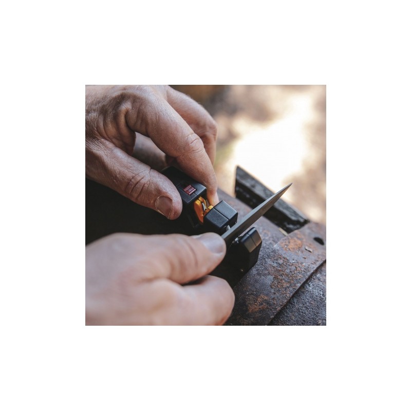Work Sharp Pivot Plus to doskonałe rozwiązanie dla pasjonatów outdooru, myśliwych oraz miłośników edc, którzy szukają niewielkiej i wydajnej ostrzałki do codziennego noszenia w plecaku lub kieszeni.