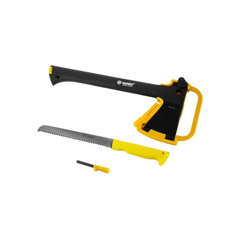 W środku uchwytu znajduje się piła, łatwo dostępna w razie potrzeby. Długość całkowita piły to 300 mm, gdzie długość brzeszczotu to 180 mm w identycznej jakości stali jak głowica toporka. Końcówka brzeszczotu jest zaokrąglona. Jasnożółty uchwyt wykonano z plastiku ASB. Podobnie jak w przypadku siekiery, rękojeść rozszerza się w kierunku końca i posiada otwór na smycz. U dołu uchwytu znajdują się wyżłobienia na palce, poprawiające prawidłowy chwyt.