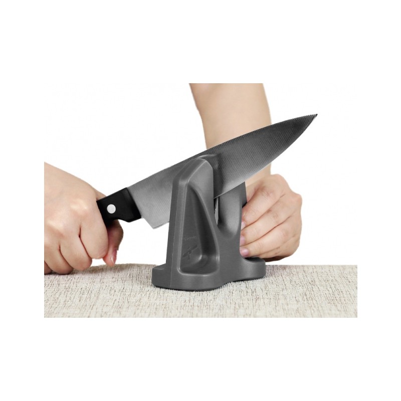 Niewielka bryła oraz minimalny ciężar powodują, że pomimo kuchennego przeznaczenia może nam także towarzyszyć na kempingu, polowaniu oraz innej aktywności, podczas której będziemy potrzebować ostrego noża. Ostrzałka ma antypoślizgową podstawę, obustronny chwyt oraz szczelinę ostrzącą.