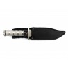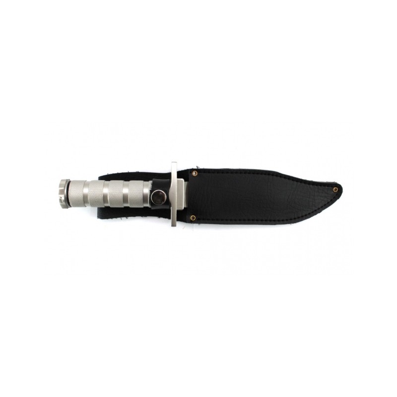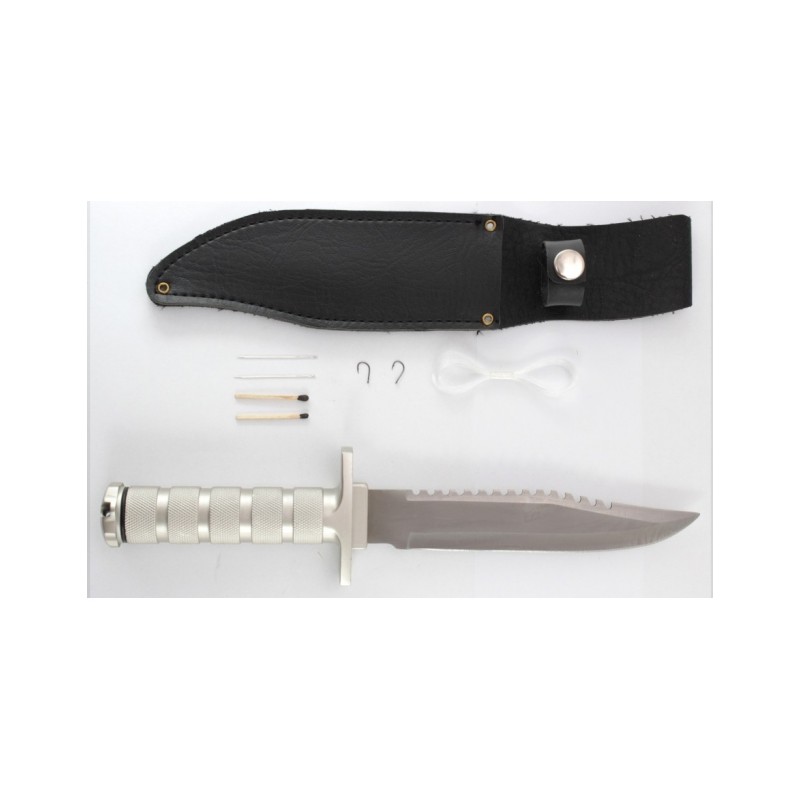 Wysokiej jakości noż survivalowy niemieckiej marki FOX. W całości wykonany z mocnej i grubej stali nierdzewnej. Dzięki specjalnemu uchwytowi nóż można przypiąć do pasa. Kabura wykonana jest ze skóry. W nakrętce rączki mieści się kompas a w środku umieszczono zestaw niezbędny do przetrwania.