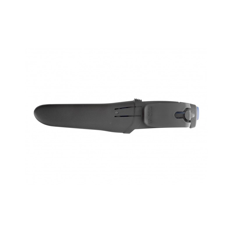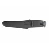 Ergonomiczną rękojeść pokryto teksturowanym tworzywem sztucznym, co zapewnia pewny chwyt w każdej sytuacji. Manipulujący nożem użytkownik, niezależnie od warunków, może czuć się pewnie i komfortowo. W komplecie znajduje się czarna pochwa wykonana z tworzywa sztucznego, która ułatwia wygodne przenoszenie noża.