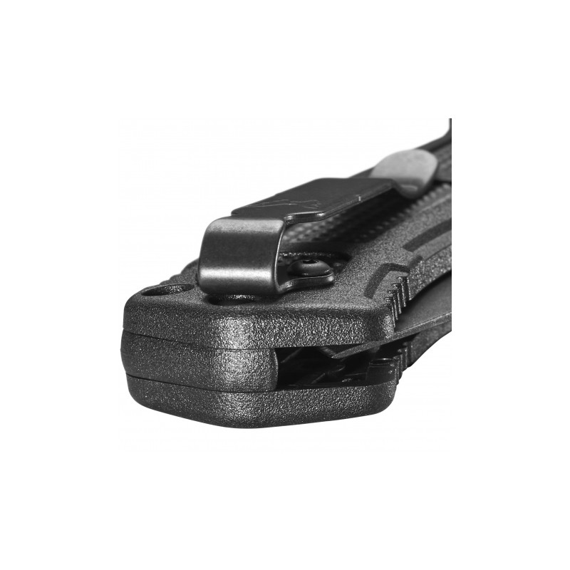 Smukłą klingę drop-point o długości 86 mm, pokryto czarną powłoką cerakote, który chroni przed korozją, drobnymi zarysowaniami i podkreśla taktyczny charakter noża. Klinga ma mocny sztych i szlif płaski, co gwarantuje płynne cięcie oraz łatwą penetrację. Głownia w najszerszym miejscu ma aż 2,9 mm grubości. Takie parametry gwarantują funkcjonalność i wytrzymałość noże oraz powodują, że może być wykorzystywany do wymagających zadań.