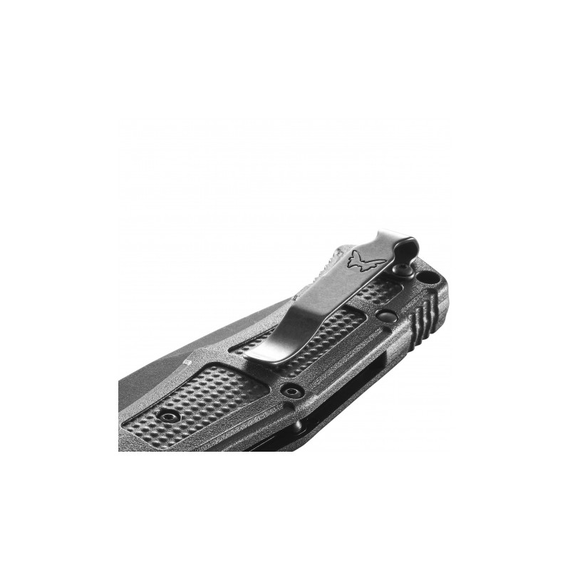 W nożu Benchmade 9070SBK-1 Claymor zastosowano stal klasy premium CPM-D2 o imponującej retencji, lekkie okładziny z laminatu Grivory oraz pancerną blokadę, która wyznacza nowy standard wytrzymałości. W ten sposób powstał lekki i niezawodny nóż taktyczny dla osób, które szukają bezkompromisowych rozwiązań.